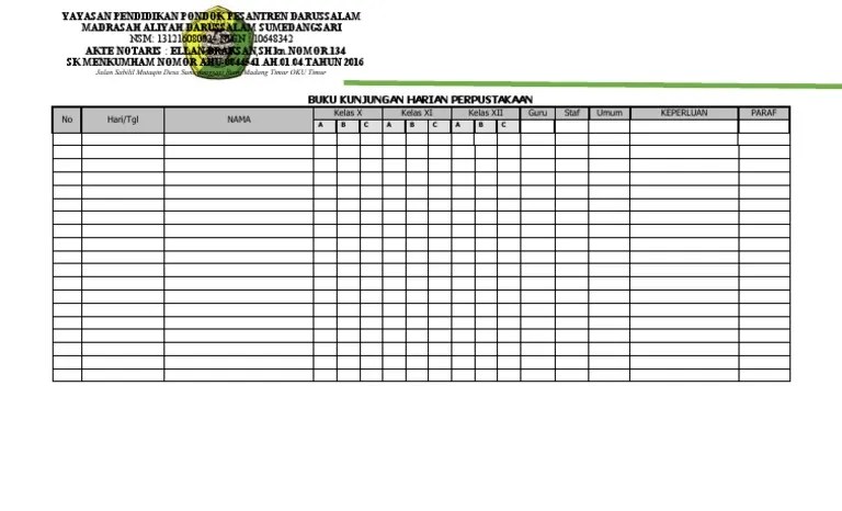 Download contoh buku kunjungan,yang mungkin anda butuhkan saat ini,maka tepat sekali mengunjungi blog kami karena dalam kali ini kami akan . Format buku peminjaman perpustakaan sekolah words health and safety poster microsoft word . Contoh format administrasi perpustakaan sekolah lengkap. Formulir keanggotaan pustaka.docx (88.3 kb); Seperti buku induk perpustakaan, buku kunjungan harian perpustakaan, buku kunjungan kelas perpustakaan, rekapitulasi peminjaman buku, daftar buku teks, .